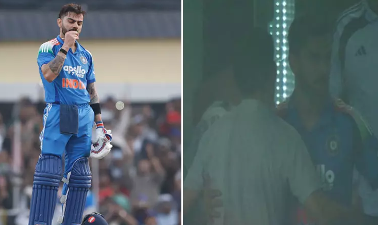 இதற்கிடையில் போட்டியில் சதமடித்து அசத்திய கோலி மைதானத்திலிருந்து வெளியேறும் போது, ஓய்வறையில் இருந்த தலைமை பயிற்சியாளர் கவுதம் கம்பீர் அவரை இருகையாலும் அணைத்துப் பாராட்டிய தருணம் கேமராவில் பதிவு செய்யப்பட்டது. அந்த காட்சி தற்போது சமூக வலைதளங்களில் வேகமாக வைரலாகி வருகிறது.